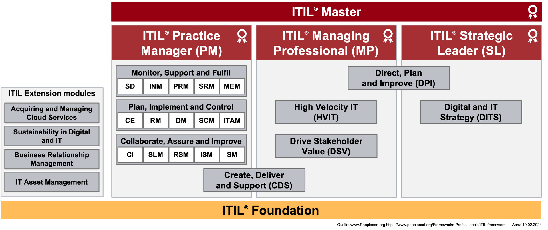 Das Zertifikat ITIL® Master wird automatisch verliehen, wenn die 3 Zertifikate ITIL® MP, ITIL® SL und ITIL® PM erreicht wurden.
